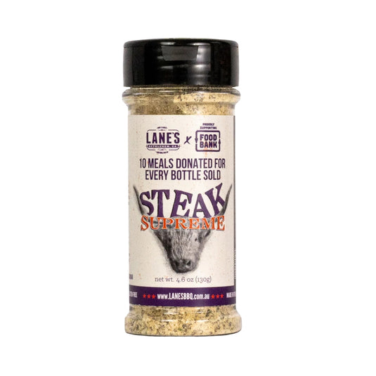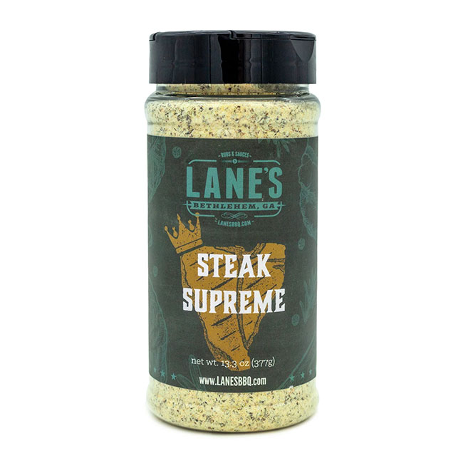 Lane's Steak Supreme is a sugar-free rub and seasoning blend perfect for enhancing the flavor of your favorite meats. Crafted for versatility, it complements beef, poultry, and more. Elevate your grilling experience with this expertly balanced mix of spices.