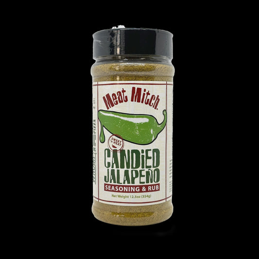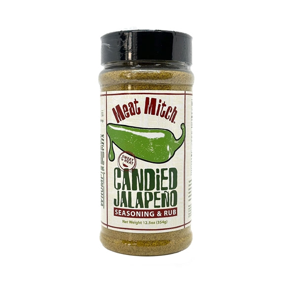 Enhance your dishes with Meat Mitch Candied Jalapeño Seasoning & Rub, offering a perfect balance of sweet and heat. Ideal for grilling or seasoning meats, its unique flavor profile adds a spicy kick to any meal. This 6.25 oz blend is sure to elevate your culinary creations.